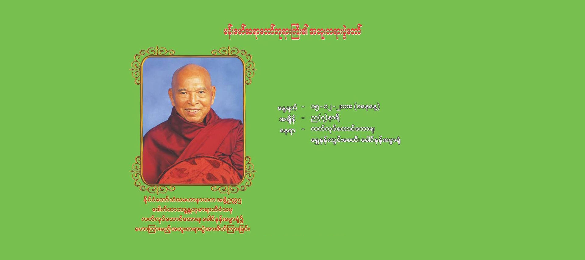 ဆရာတော်ကြီးအား မနေ့က လက်လုပ်တောင်တွင်ဖူးခွင့် မရသော ဓမ္မမိတ်ဆွေများထံ အသိပေးမျှဝေခြင်းဖြင့် ကုသိုလ်ရကြပါစေ။
